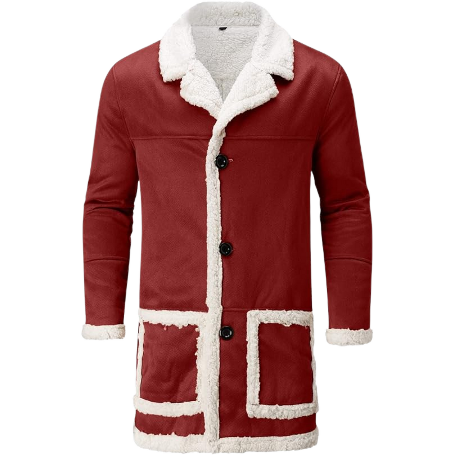 Men's Santa Claus Christmas Sherpa Fur Long Red Wool Trench Coat