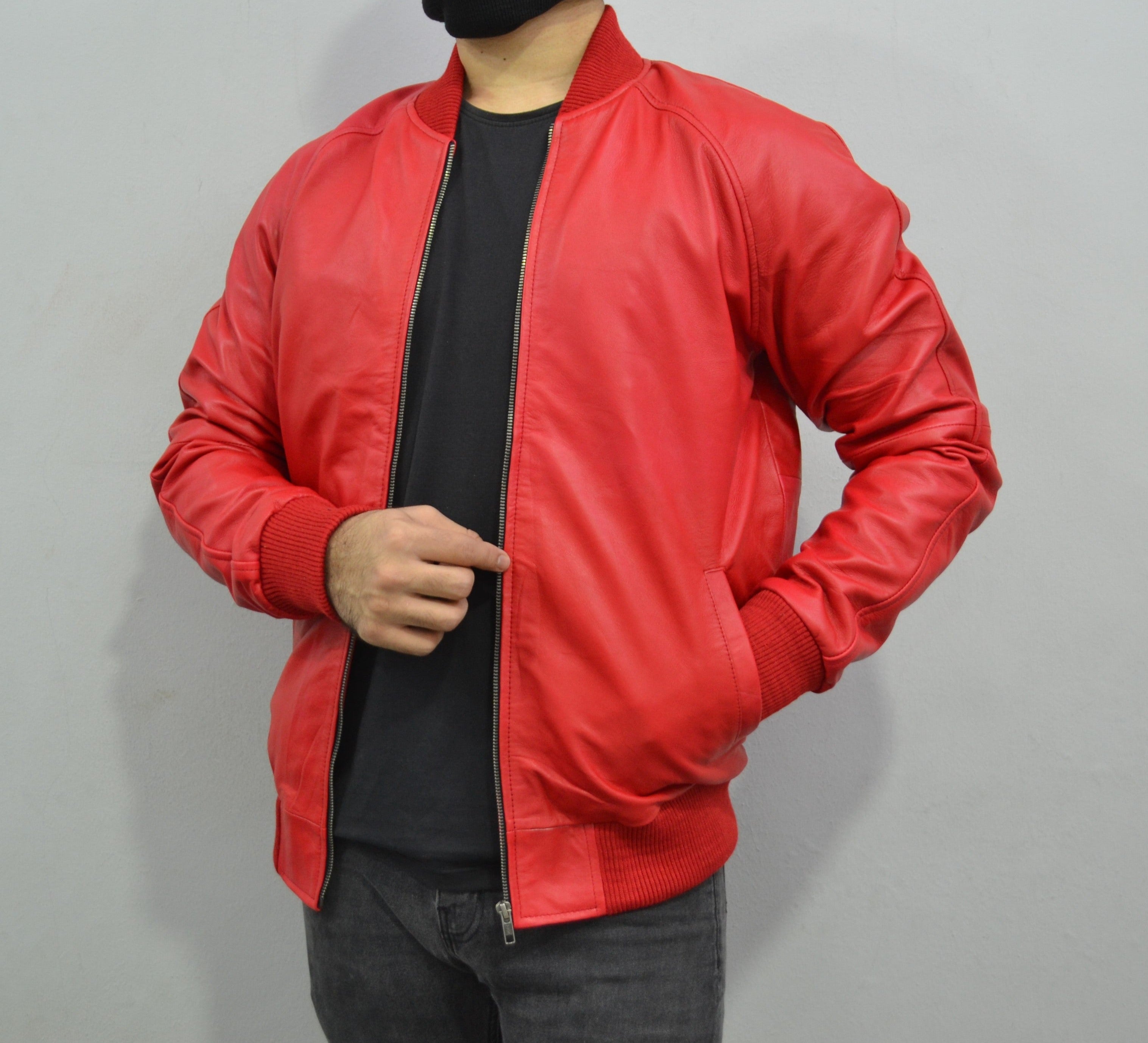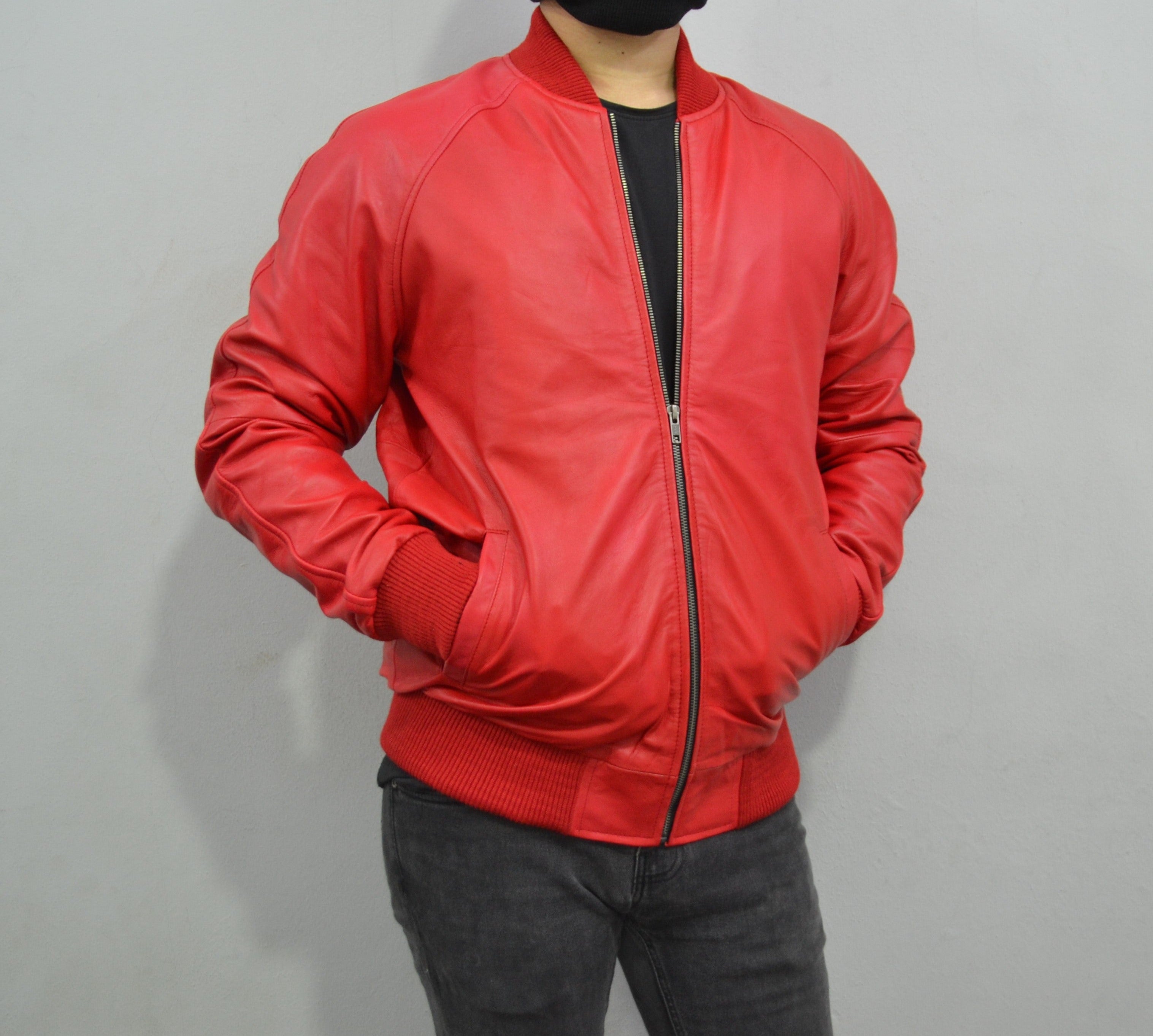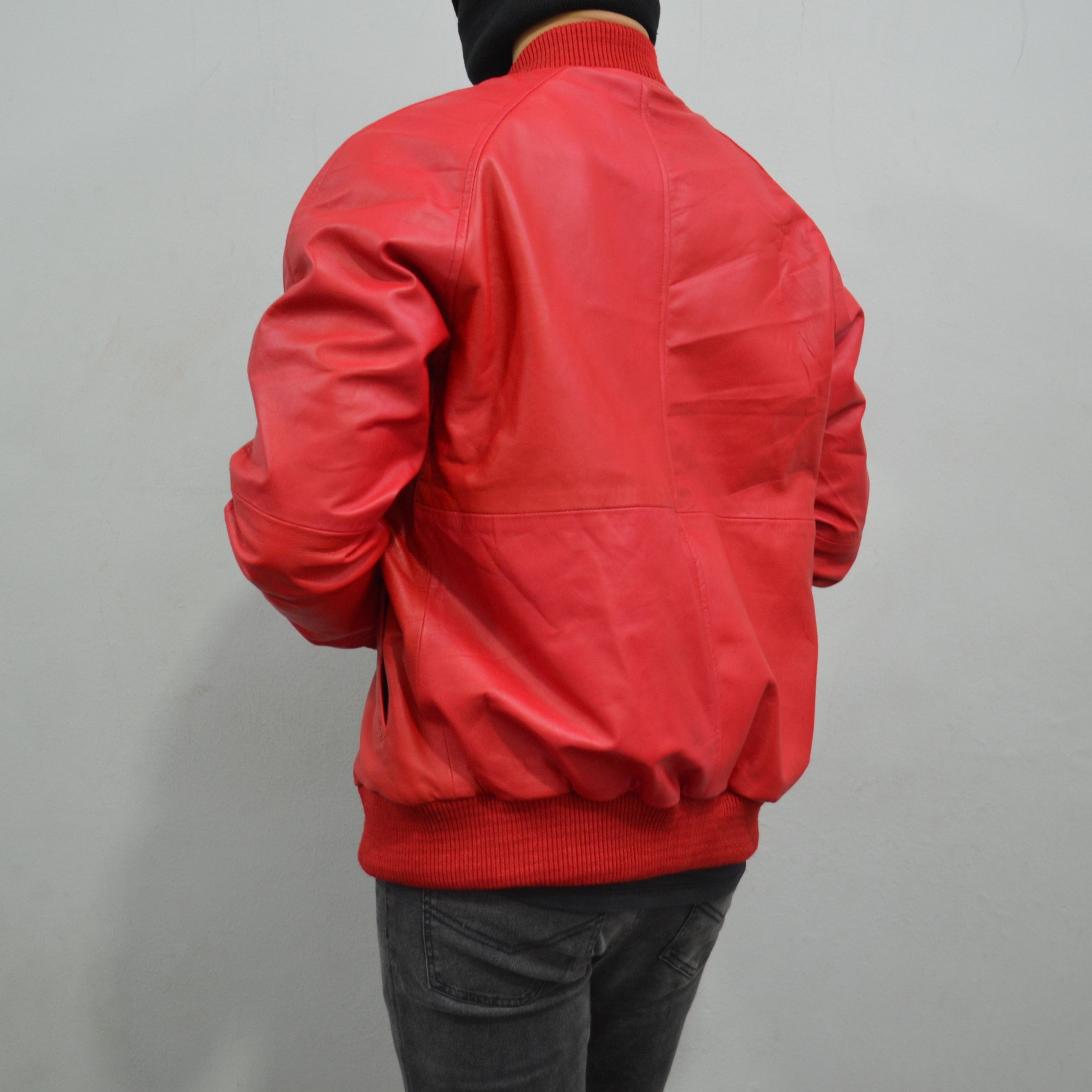 Men's Red Bomber Pilot Real Sheepskin Leather Jacket Elevate your wardrobe with our Men's Red Bomber Pilot...