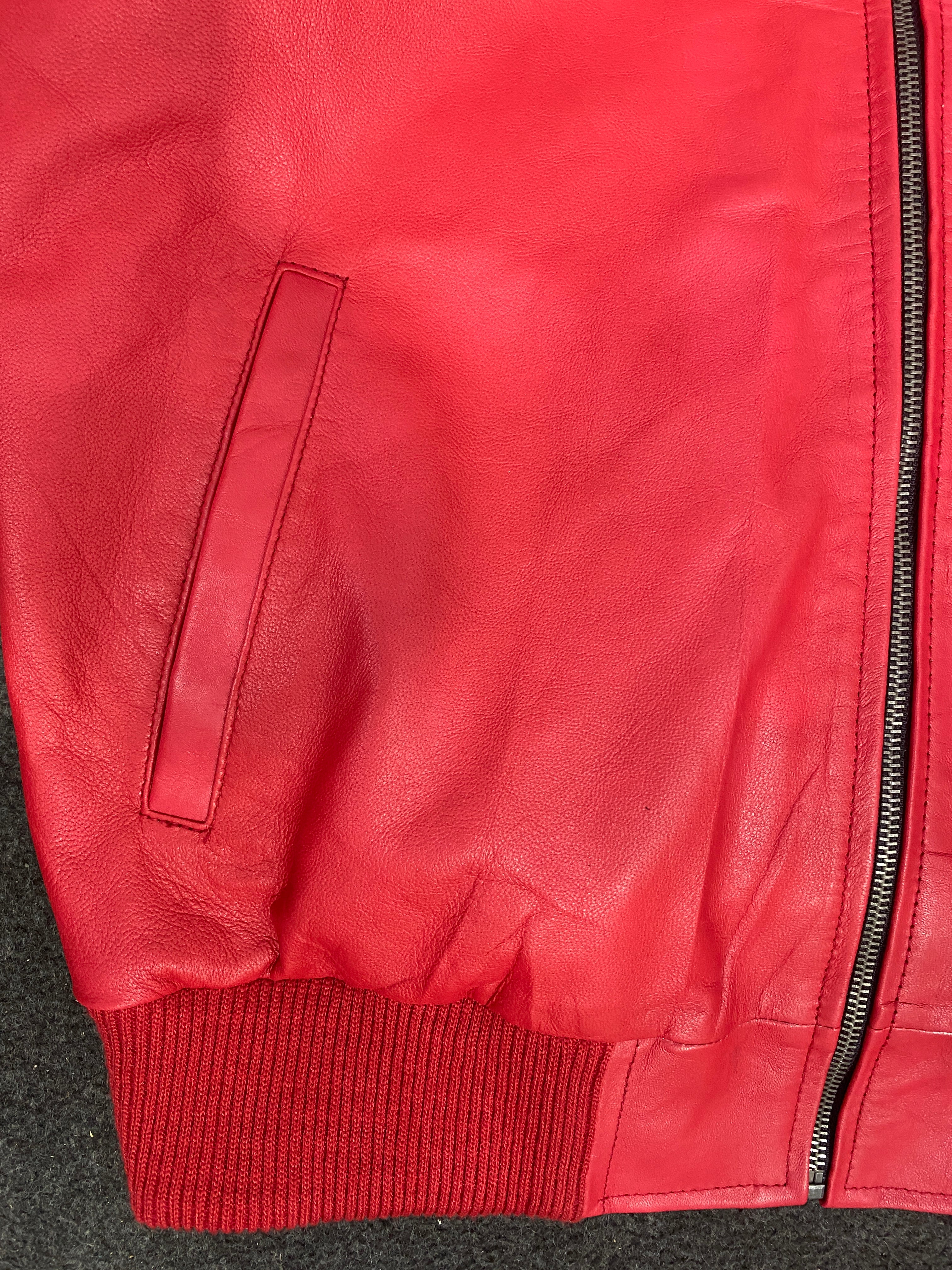 Men's Baseball Letterman Varsity Genuine Leather Red Bomber Jacket