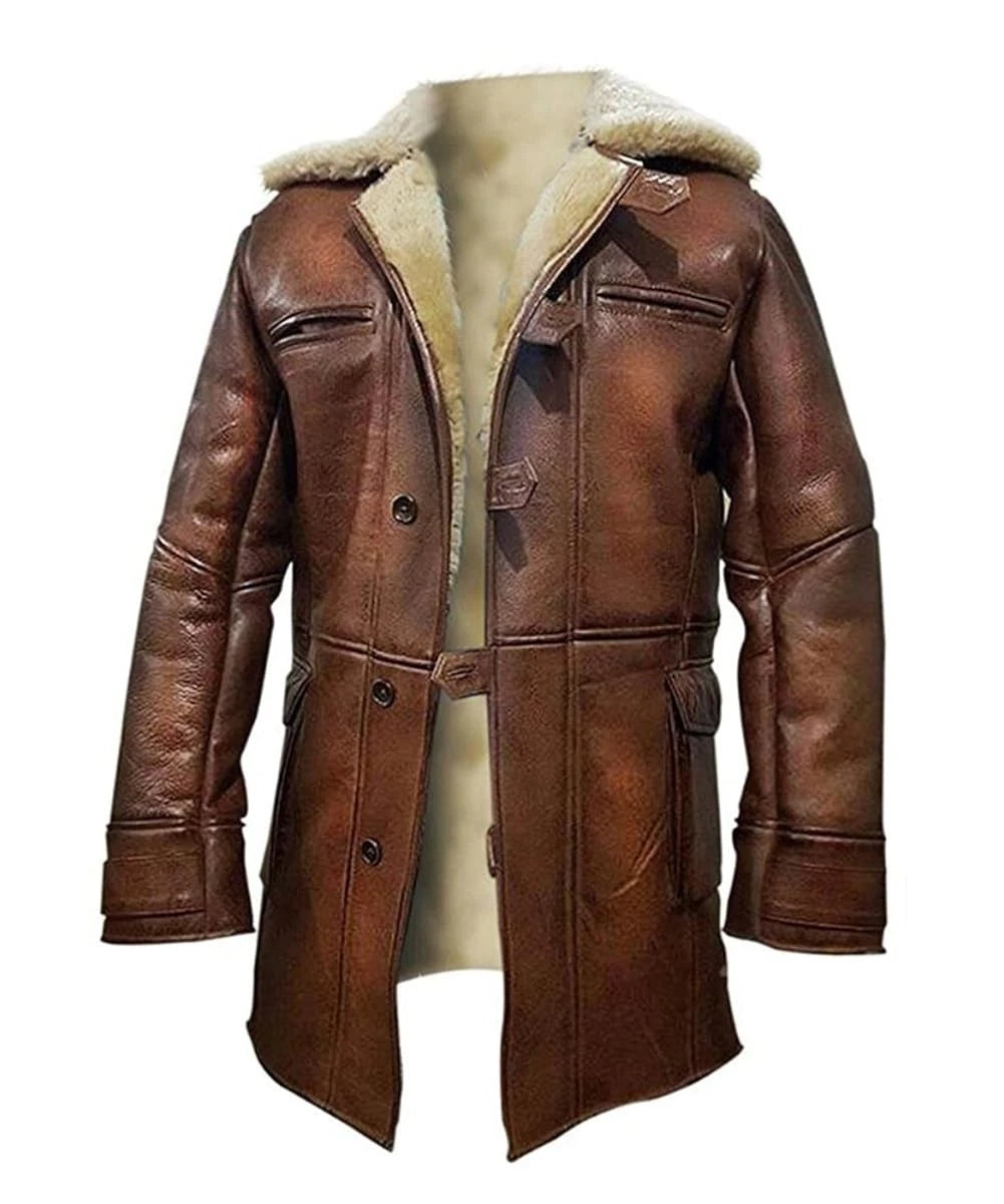 Crafted from premium real leather with a soft faux shearling lining, this coat delivers warmth, durability, and superior comfort. The robust construction, reinforced stitching, and heavy-duty zippers ensure long-lasting wear while maintaining the classic Bane look. Its shearling interior provides insulation, making it ideal for colder weather without compromising style.