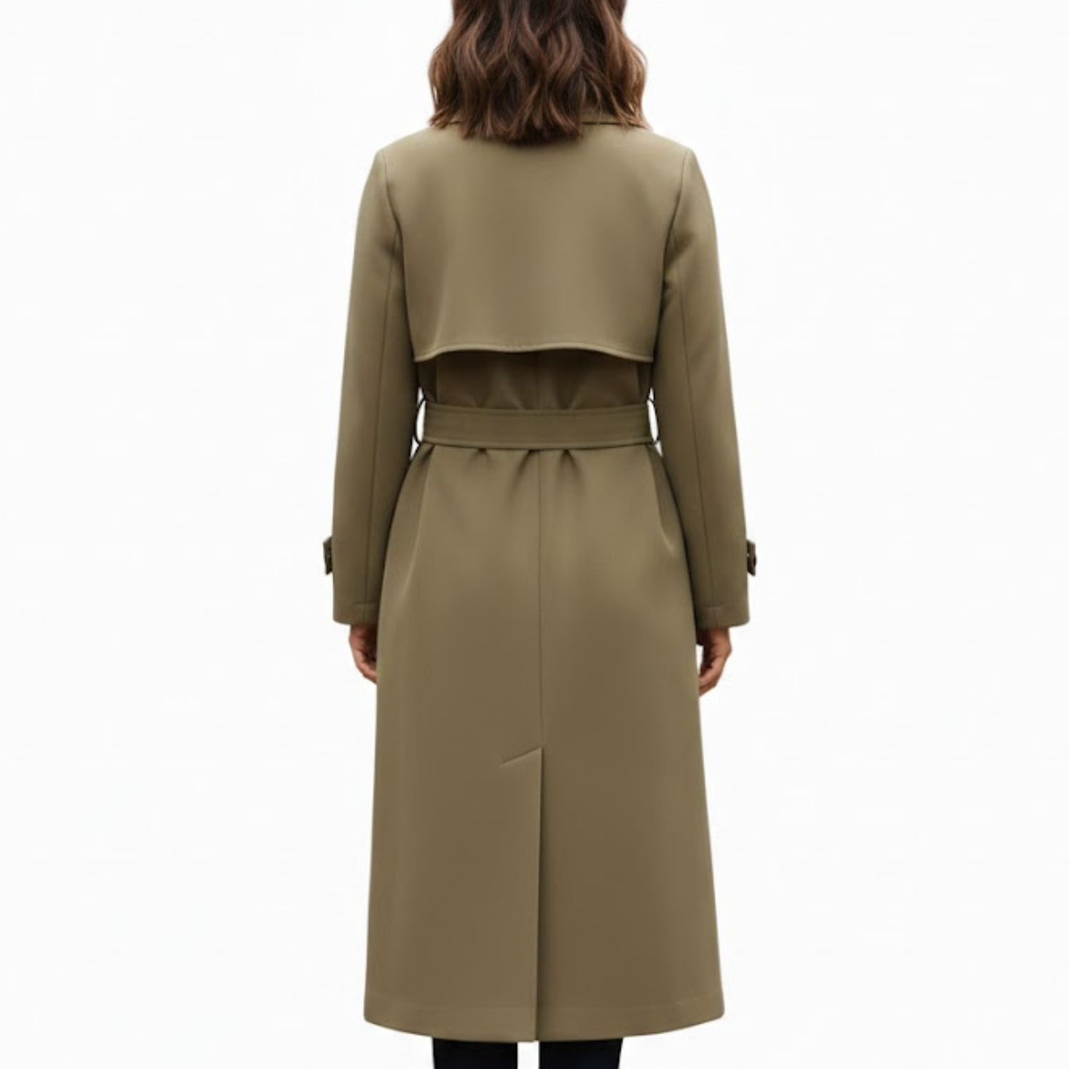 • Women’s Khaki Premium Wool Double-Breasted Long Trench Coat