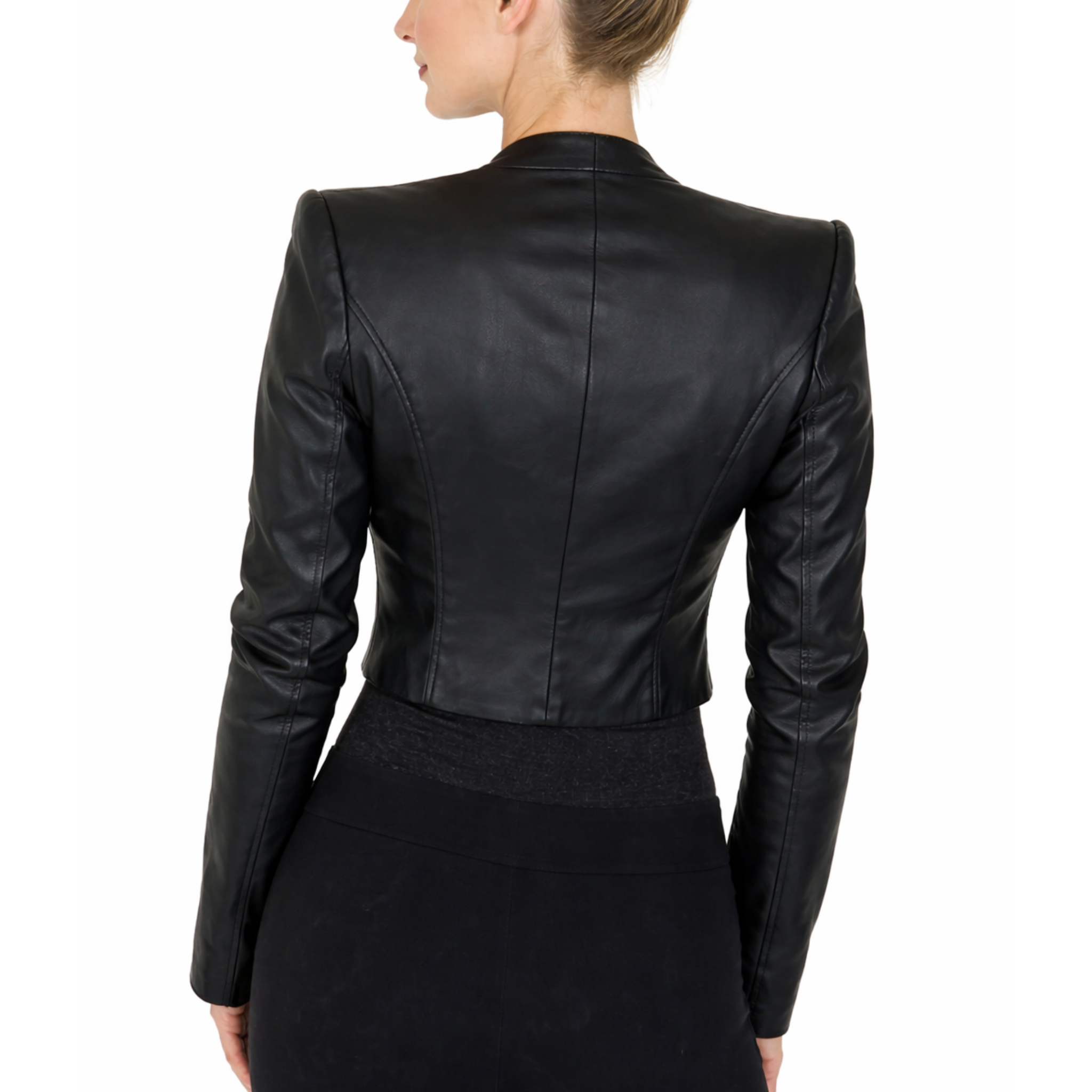 Women's Black Leather Bolero Shrug Crop Moto Jacket
