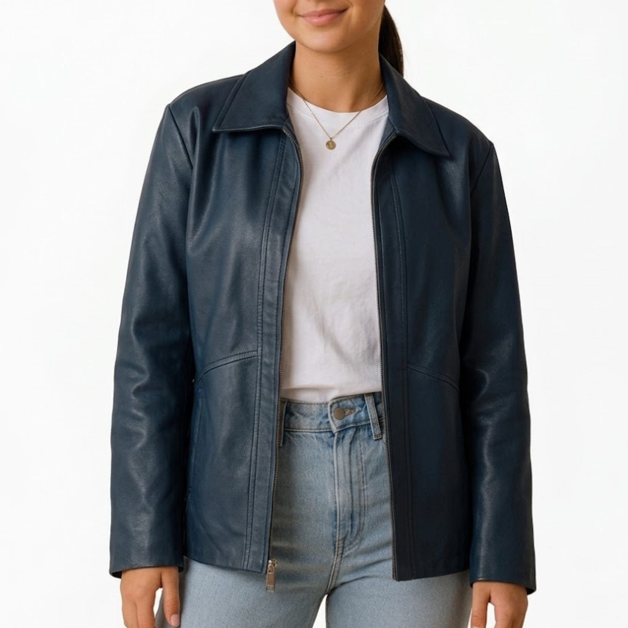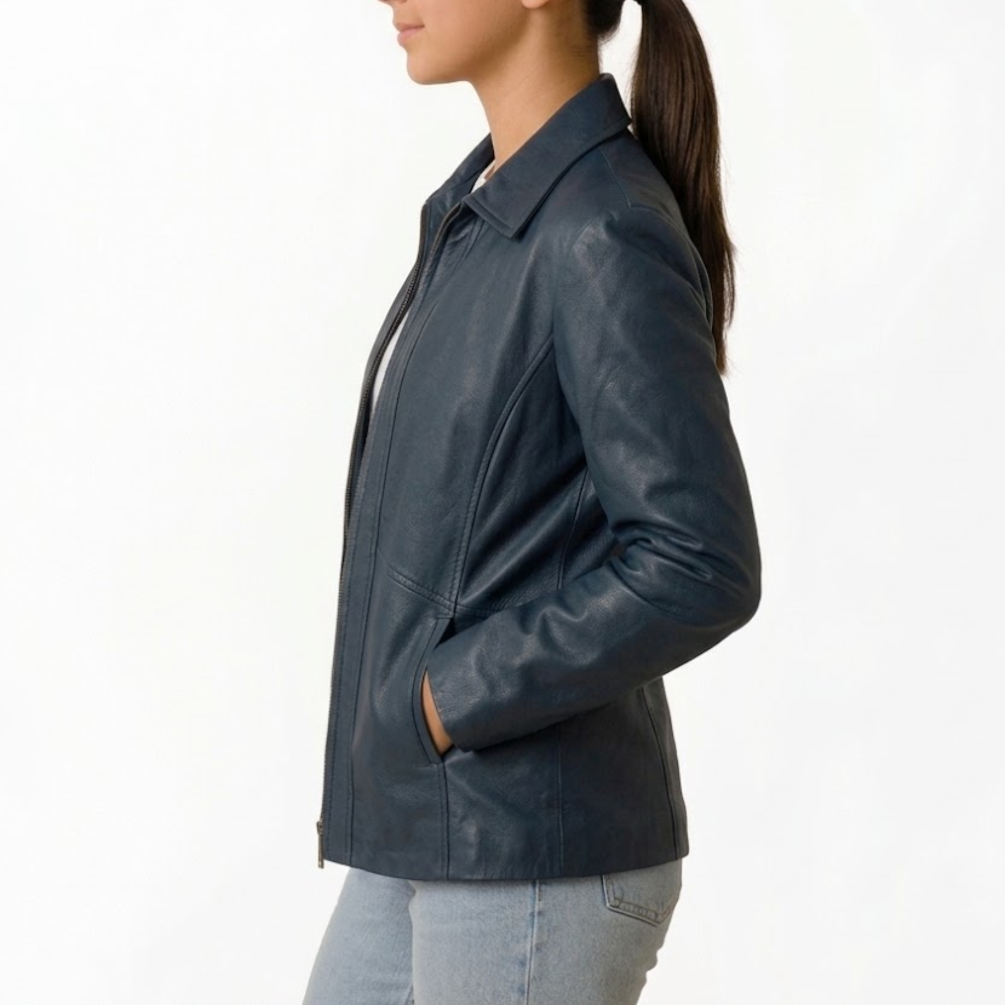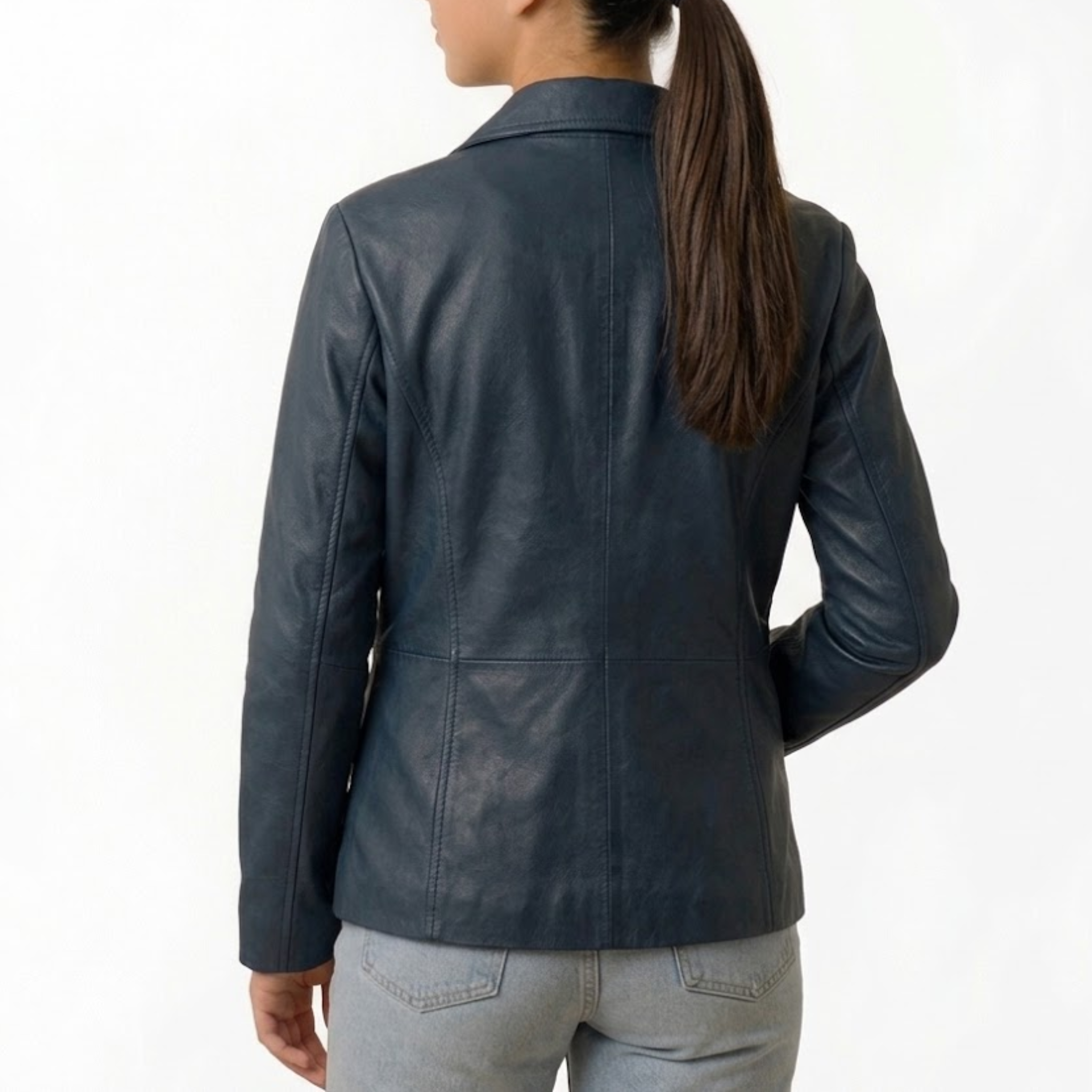 Women's Blue Wax Vintage Leather Jacket - New Fashion Style Outerwear