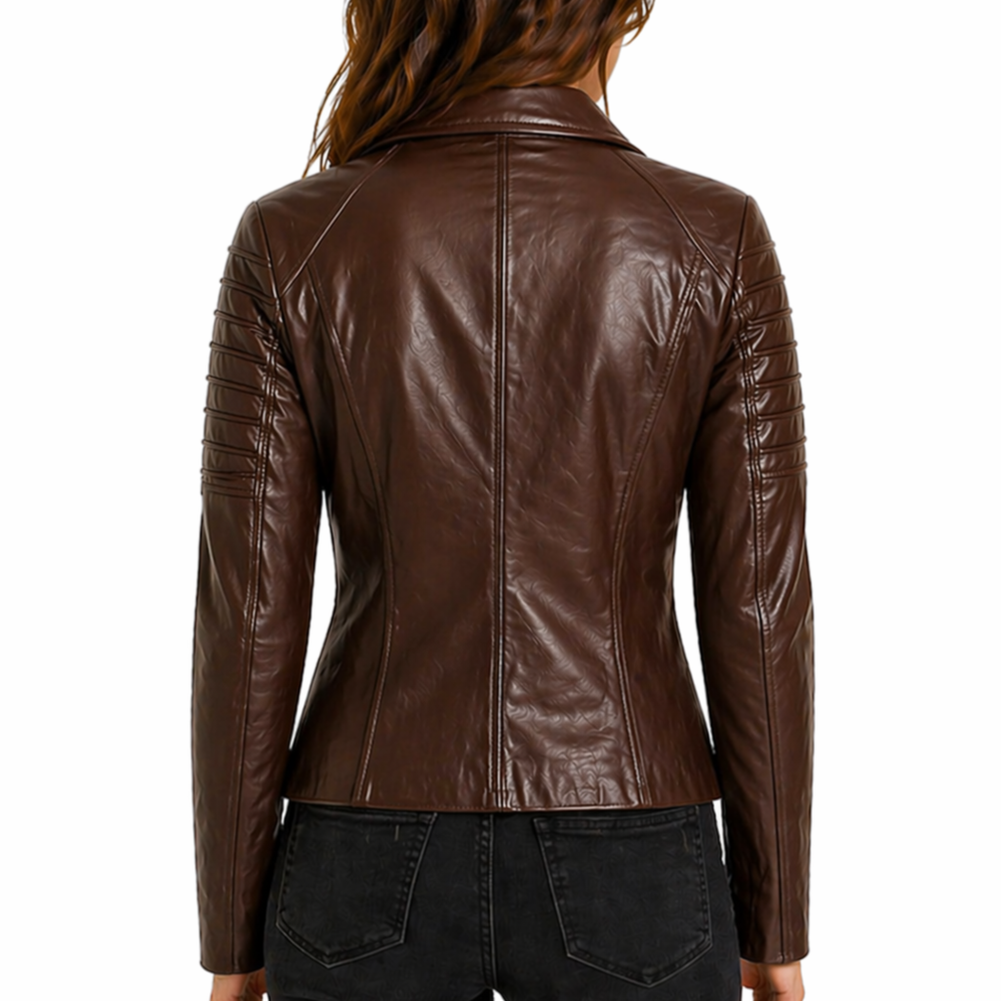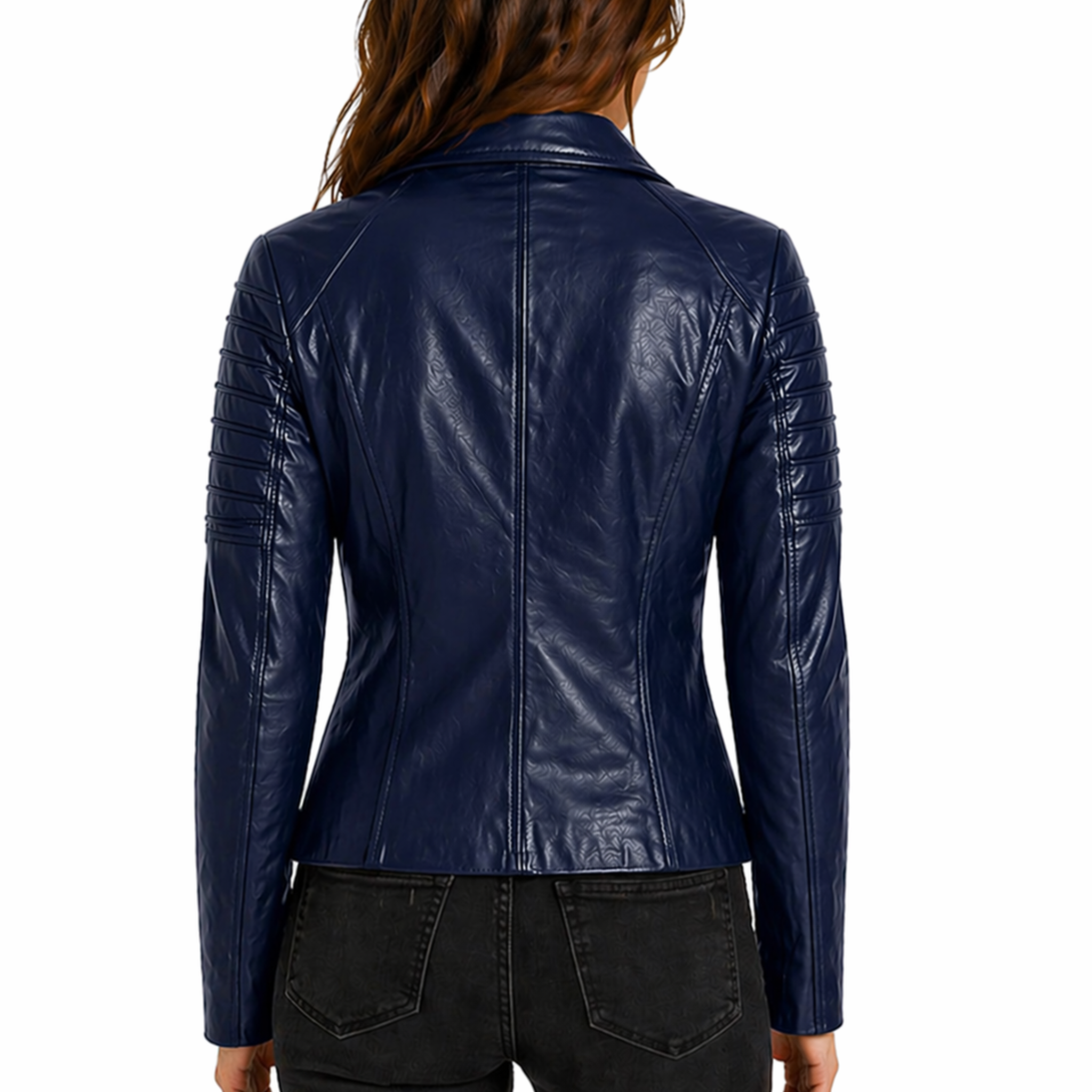 The Women's Slim Fit Designer Biker Jacket is versatile and easy to style. Pair it with skinny jeans and boots for a classic biker-inspired look, or wear it over a dress to create a chic contrast between edgy and feminine fashion. For a casual outfit, combine it with a t-shirt and sneakers. Add sunglasses or minimal accessories to complete a trendy, street-style ensemble that stands out effortlessly. This jacket is perfect for women who love stylish and confident fashion.