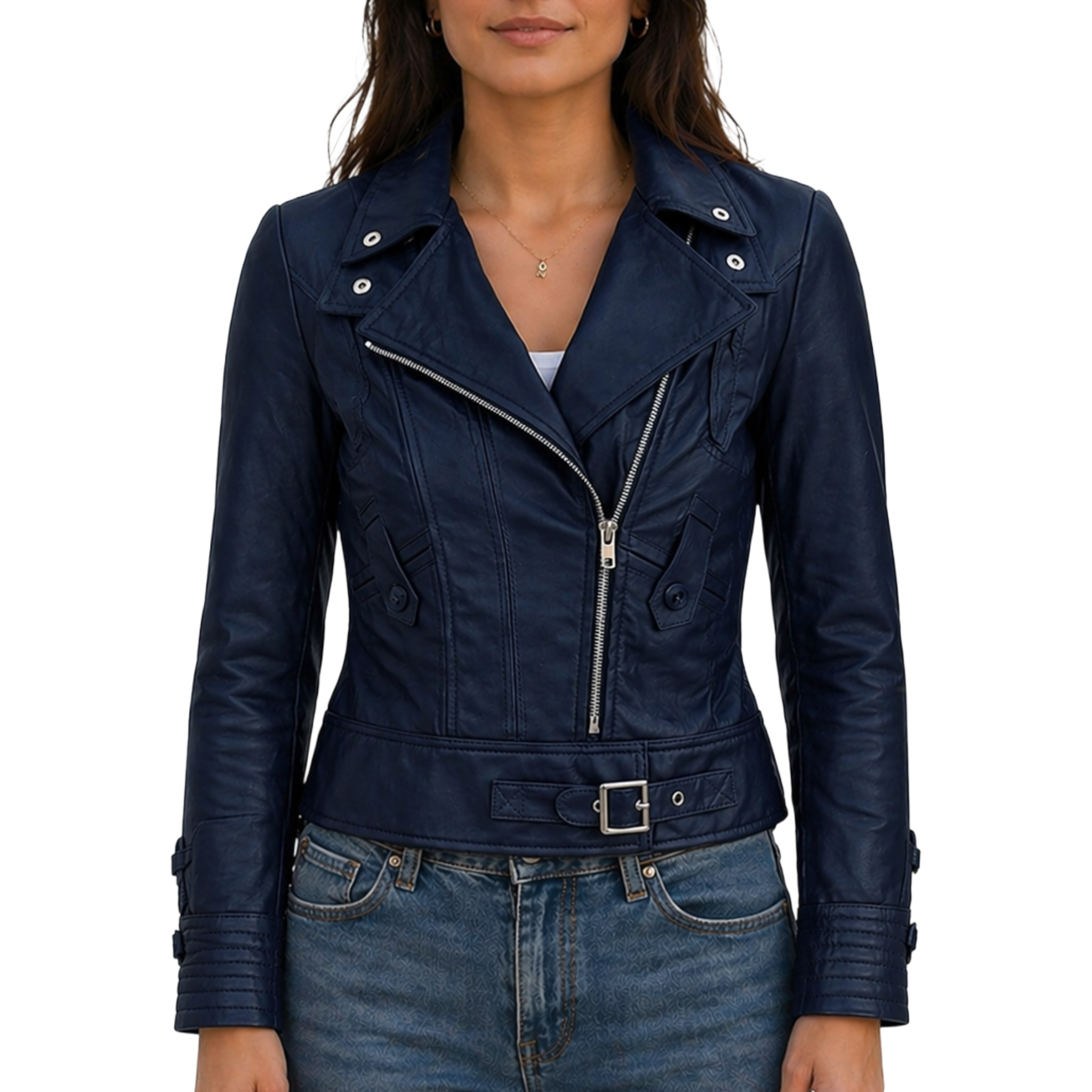 Women's Slim Fit Biker Motorcycle Jacket Upgrade your wardrobe with the Women's Real Leather Slim Fit Biker Motorcycle Jacket, a perfect blend of edgy biker style and modern elegance. Designed with a sleek slim-fit silhouette, this jacket enhances your natural shape while delivering a bold, confident look. Inspired by classic motorcycle fashion, it features a timeless design that works effortlessly for both casual and semi-formal occasions. Whether you're heading out for a ride, a casual day, or a night out, this jacket adds a stylish edge to any outfit.