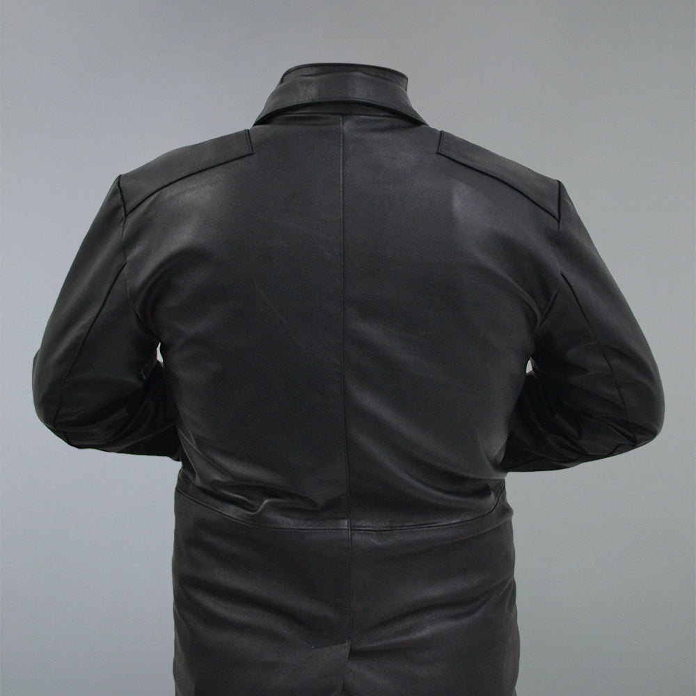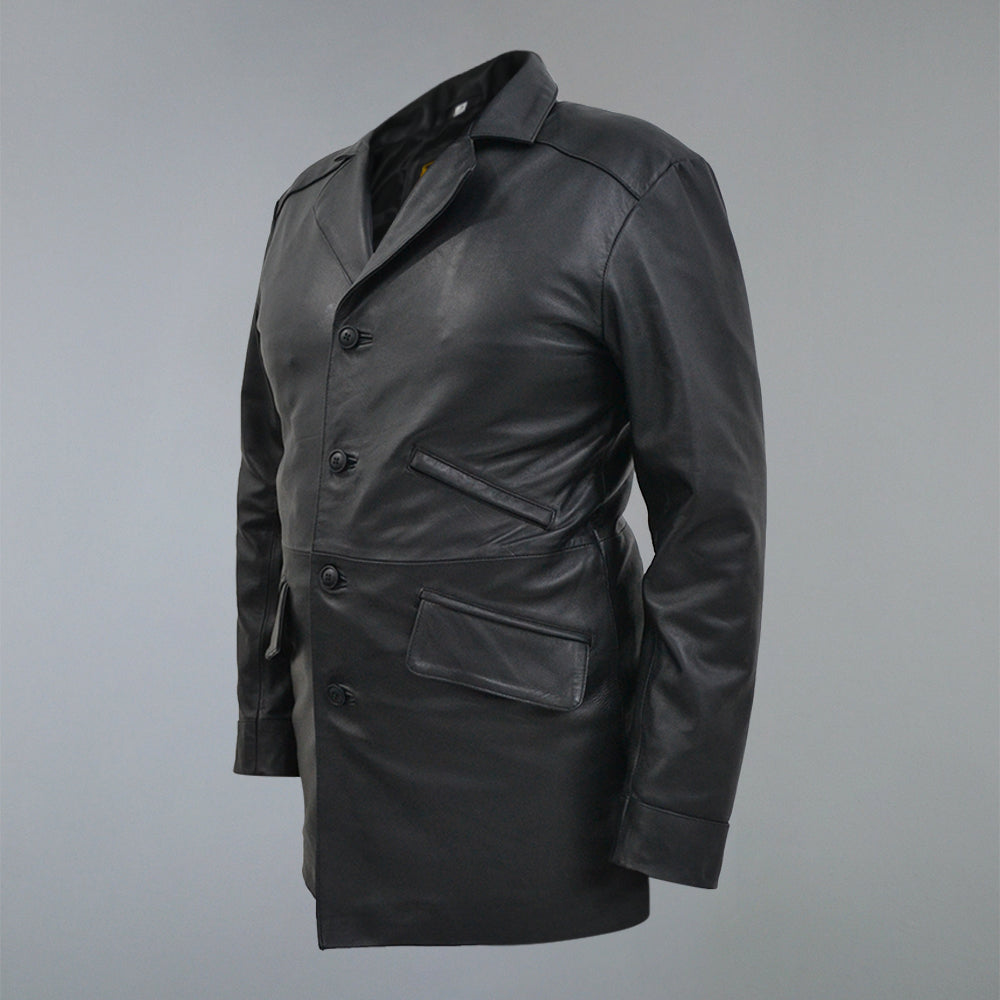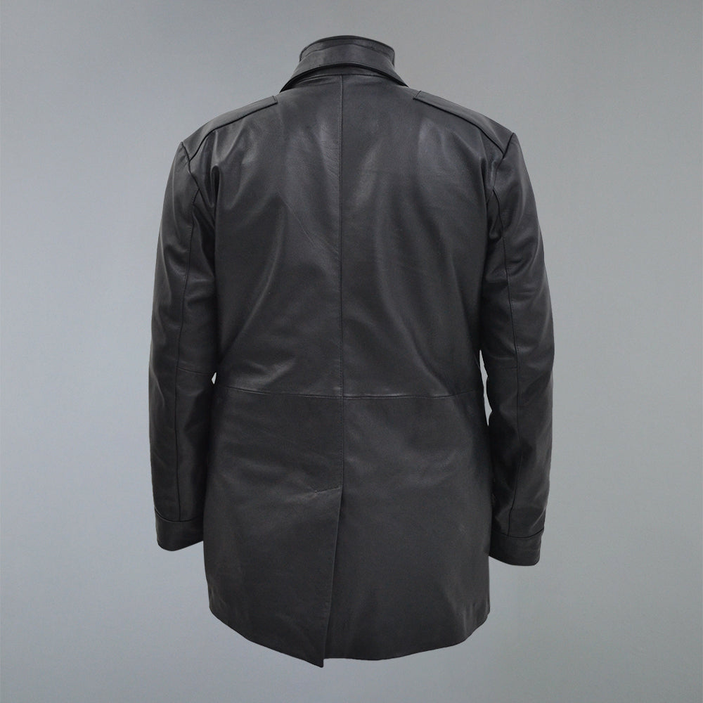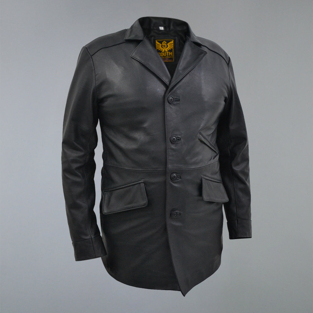 Men's Three Quarter Mid-Lenth Black Designer Genuine Leather Coat