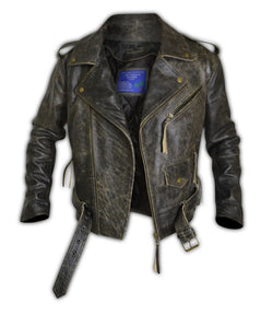 • Side Lace-up Vintage Distress Motorcycle Biker Leather Jacket (CL-12)