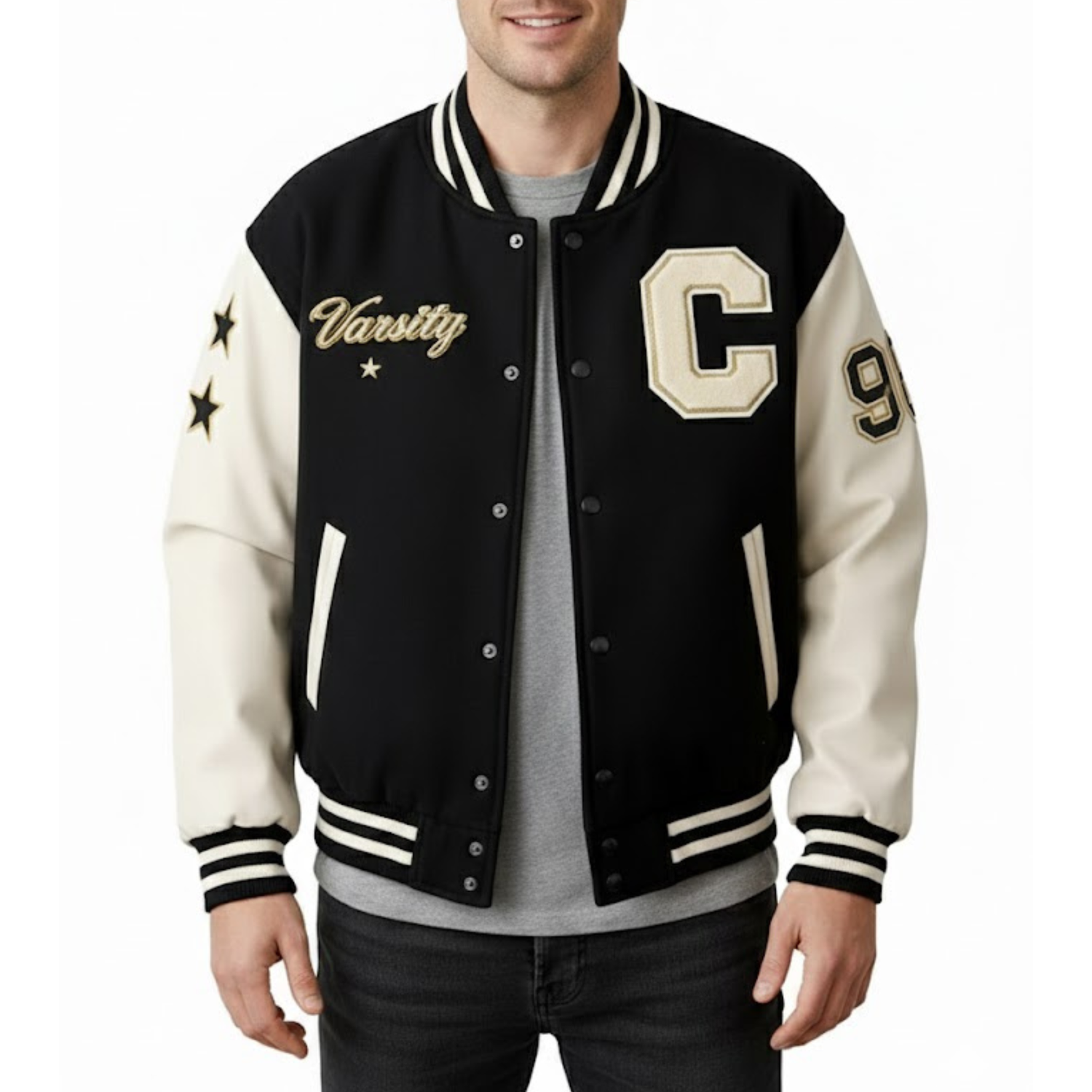 Iconic Varsity Style with Black & Cream Contrast