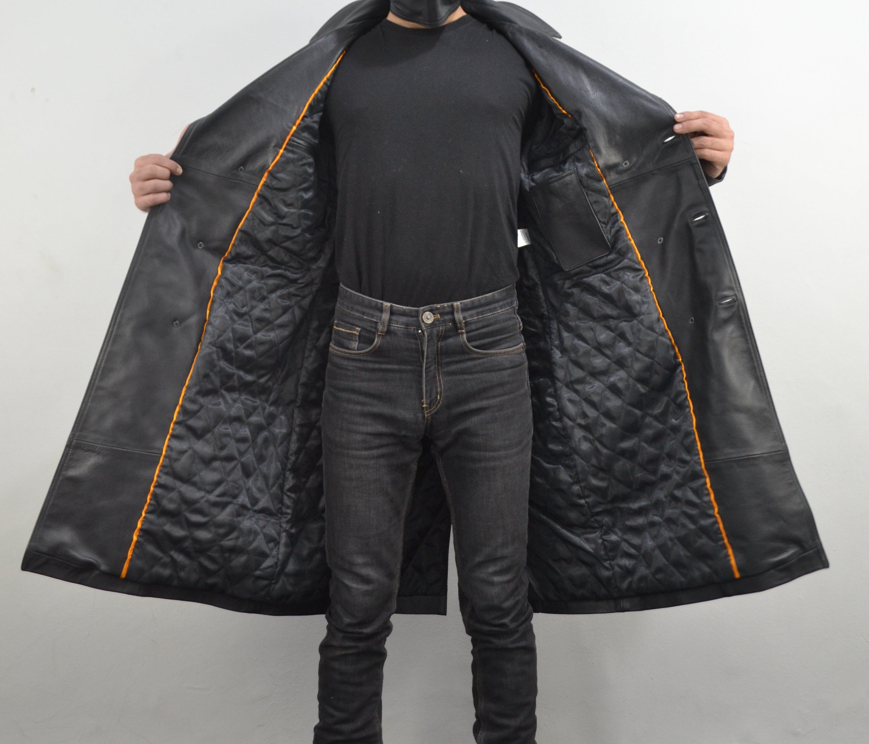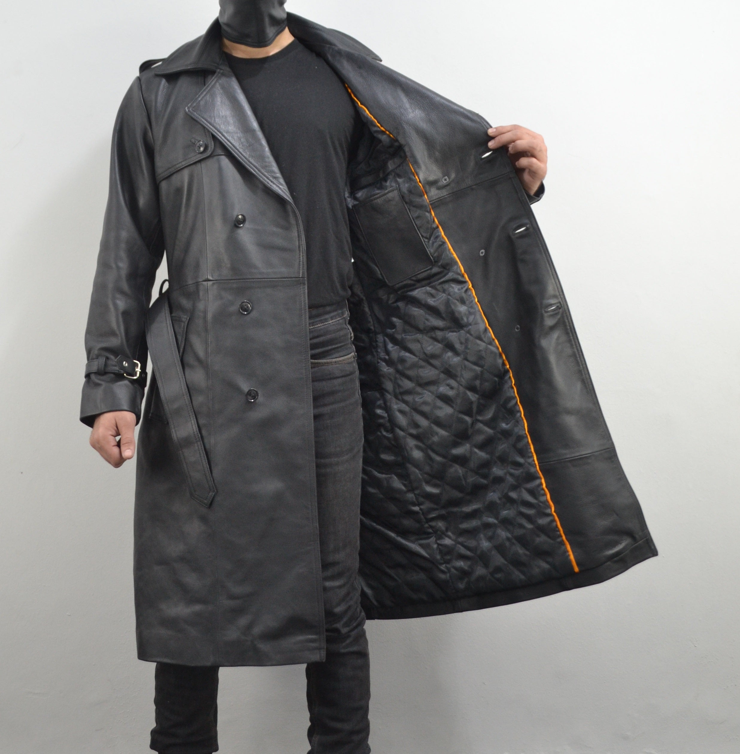 Men’s Designer Belted Black Lapel Collar Trench Genuine Leather Coat is a new design in the catalog of SouthBeachLeather. This Designer Leather Coat is one rare leather Coat style around the world. This Designer Leather Coat has a very catchy color which makes the wearer stand out in a huge crowd of people. This Designer Leather Coat is made by expert craftsmen. This Leather Coat is a must-to-wear for Leather Lovers. This Men's Leather Coat will give you an extra edge at every party. This Leather Coat is a top seller item of SouthBeachLeather. This Leather Coat consists of many features. You need this Coat to give the perfect impression at a meeting or gathering. The Coat looks elegant and stylish and is suitable for wearing at work and at parties. It is made of high-quality Genuine Leather which is soft and durable. Get your Leather Coat today from SouthBeachLeather. FEATURES Color: Black 100% Genuine Leather Slim Fit Polyester Lining. BENEFITS AND USES: The top-class Leather Coat is made up of top-quality leather that will allow you to use it for a long time period. The polyester lining will keep you soft and comfortable while wearing it. OUR QUALITY: Perfectly detailed stitching will keep you relaxed and comfortable all the time. You will not feel any type of irritation while wearing it. It is made up of durable quality leather that will allow you to use it for a very long time period. The leather used for this Coat is very soft and smooth, yet heavy enough to keep you warm.
