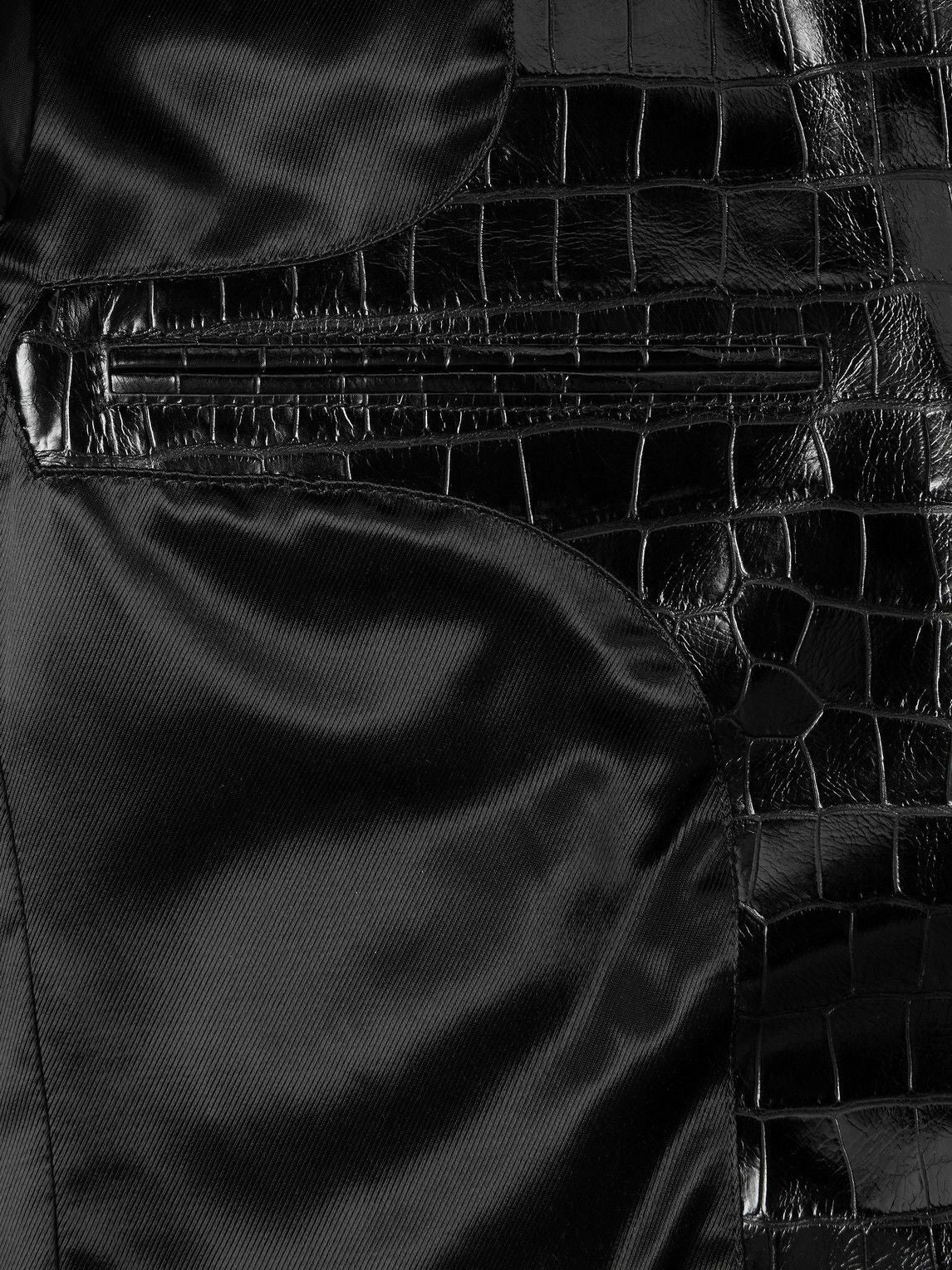 Men's Crocodile Embossed Designer Black Leather Blazer Coat | Slim Fit Casual & Formal Outerwear