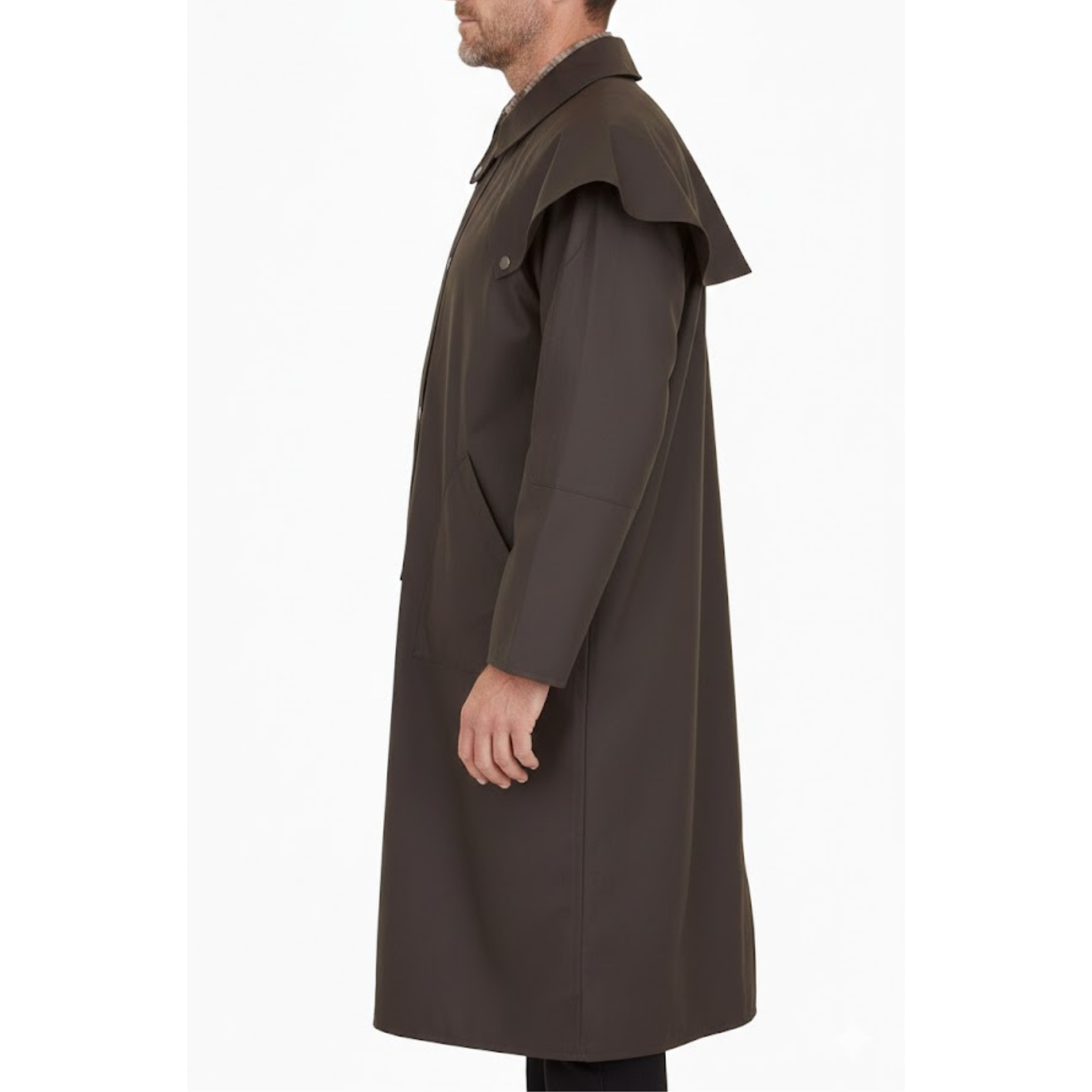 This men’s brown low rider duster coat is versatile and easy to style. Pair it with jeans, boots, and a casual shirt for a Western-inspired look, or wear it over a sweater and chinos for a smart-casual outfit. Ideal for travel, outdoor events, themed occasions, festivals, city outings, and everyday wear, this lightweight coat adds character, style, and individuality to any ensemble.