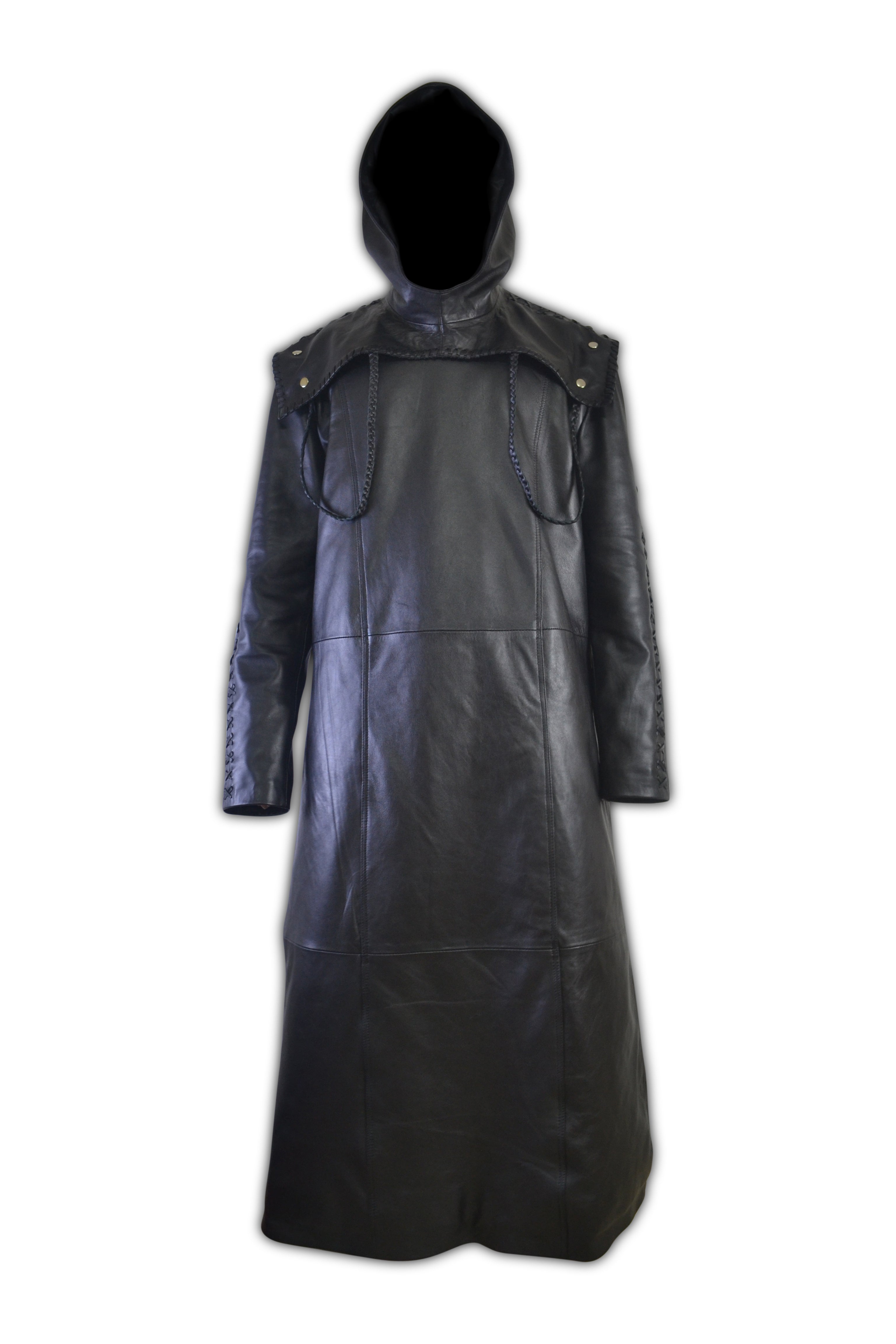 Mens Removable Hoodie Designer Lace Leather Long Coat