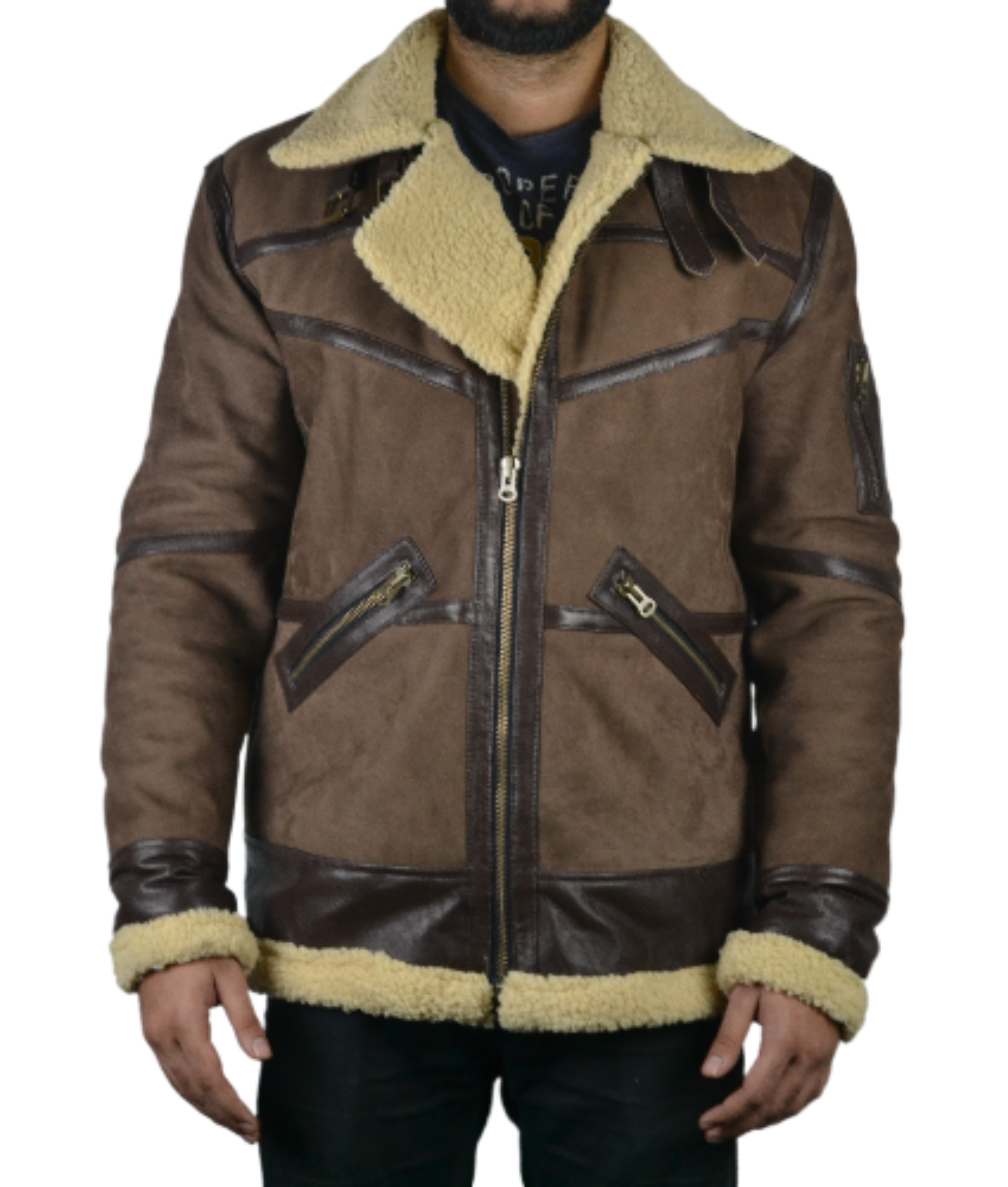 Mens Shearling Fur Bomber Brown Suede Leather Jacket is the perfect all-rounder outfit. With its inside built with Shearling Fur and its exterior made with Suede Brown Leather, this all-rounder bomber jacket fits in all of these categories. No need to buy a seperate Suede Jacket, Bomber Jacket and a Shearling Jacket, when all of it is available within one jacket.