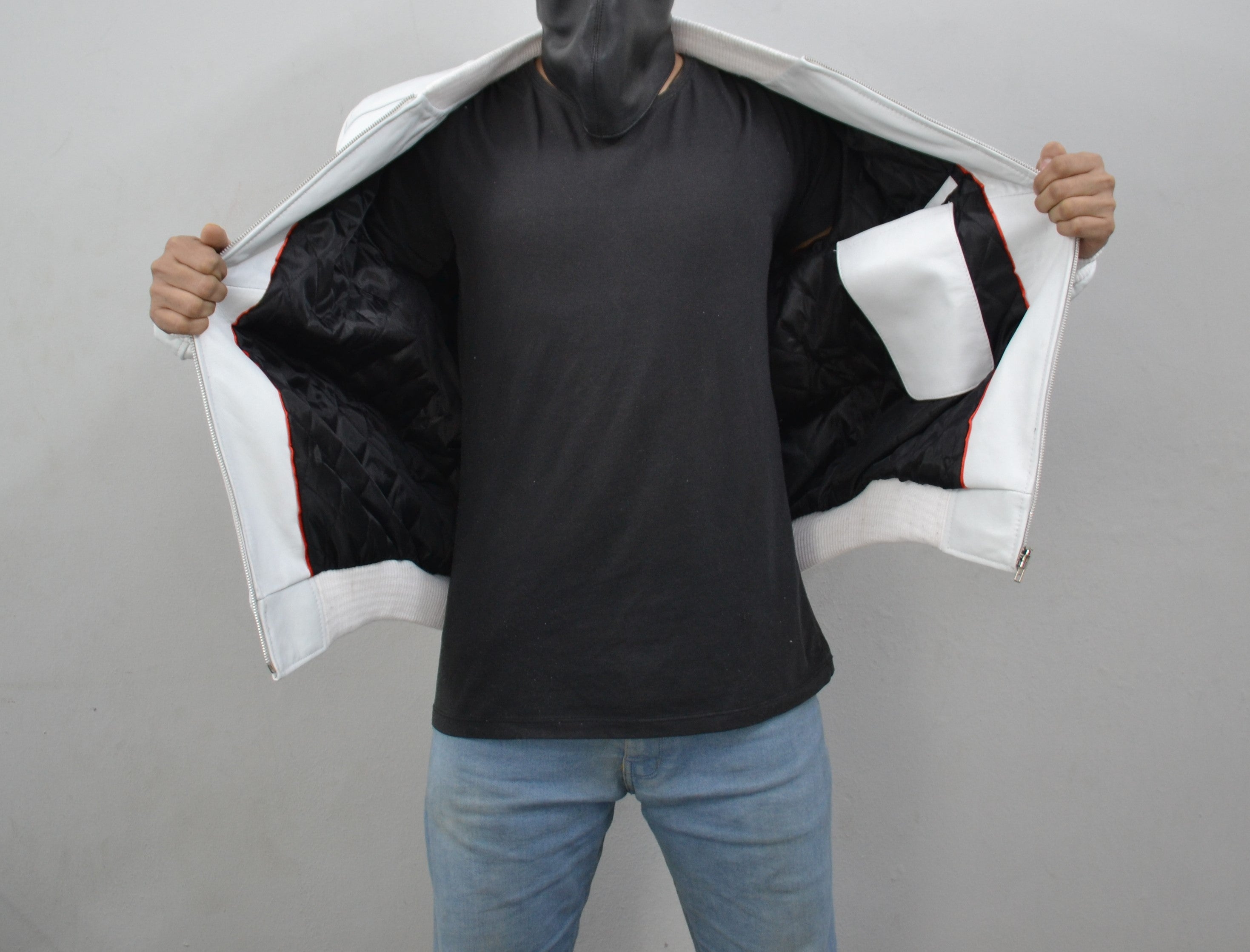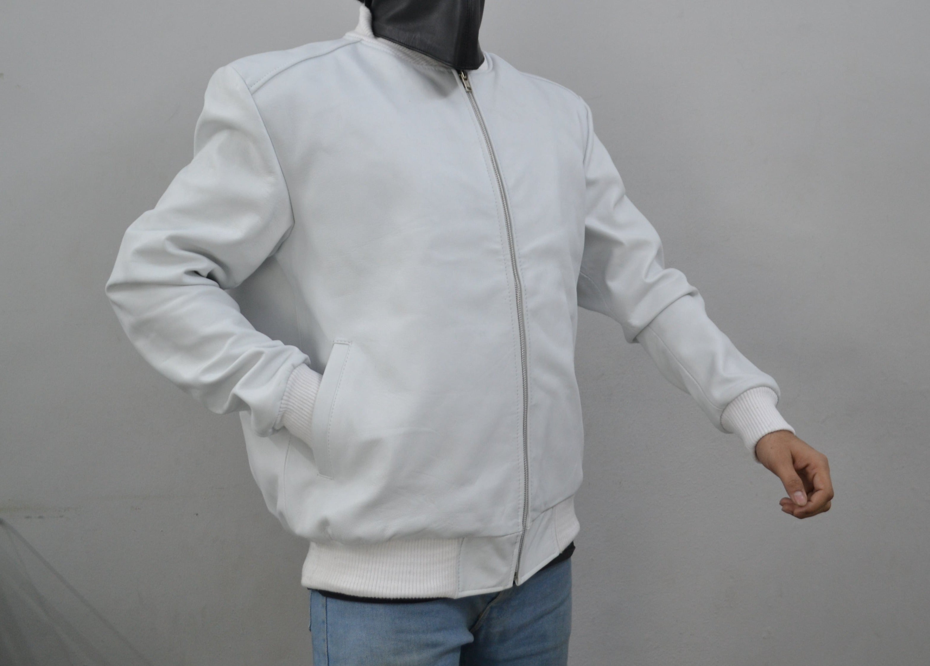Elevate your style with our Men's White Pilot Bomber Aviator Genuine Sheepskin Leather Jacket. Crafted from 100% real sheepskin, it's a timeless piece for any wardrobe.