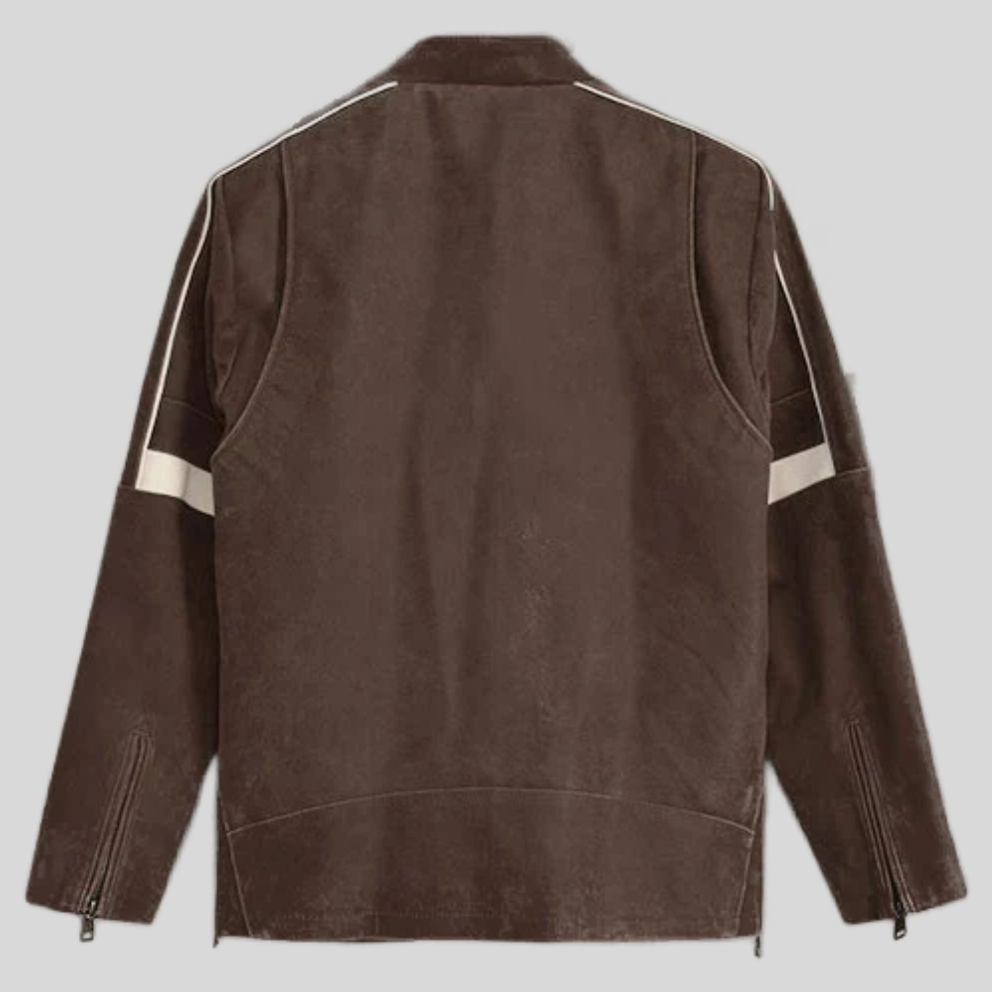 Channel your inner survivalist with the Tom Cruise War of the Worlds Brown Genuine Leather Movie Jacket, inspired by the blockbuster film directed by Steven Spielberg, released in 2005. Crafted with meticulous attention to detail, this jacket pays homage to the iconic portrayal of a father's journey through an alien invasion. Made from genuine leather and featuring white and red stripes on both sides, this jacket captures the rugged yet heroic spirit of the film. The snap button collar and zipper closure add to its utilitarian appeal, while multiple pockets provide practical storage solutions. Whether you're braving intergalactic threats or simply navigating urban streets, this jacket is a timeless symbol of resilience.