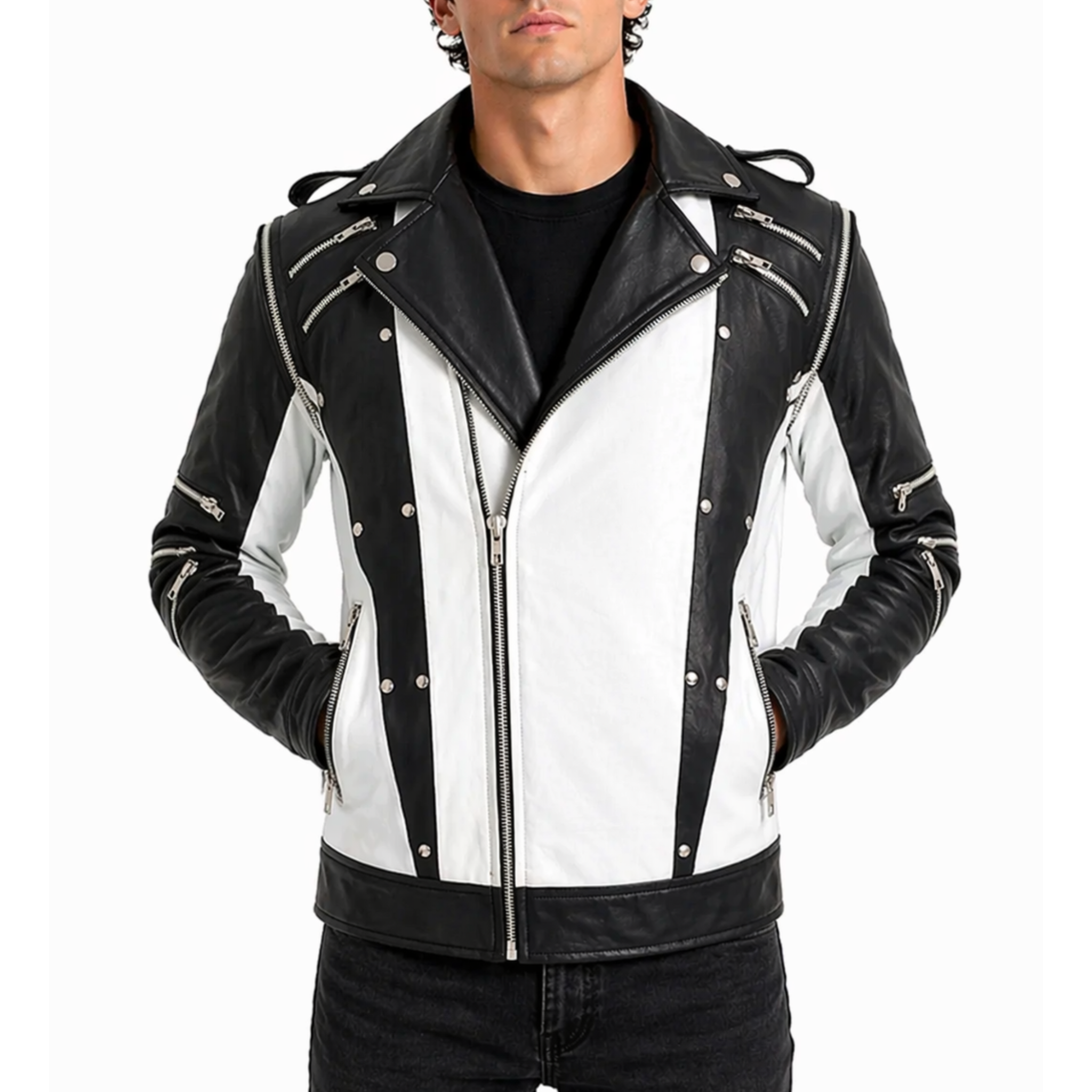 White And Black Blended Designer Mens Leather Jacket